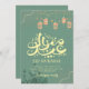 Emerald Green Mosque and Lantern Garland Eid Card Julkort