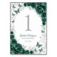 Emerald green silver Quinceanera celebration table number cards. Features, script font, silver butterflies, watercolor roses and tiara. Perfect for an elegant princess style glam celebration. Personalize with your own details. Printed Zazzle invitations or instant download digital printable template.