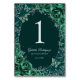 Emerald green silver Quinceanera celebration table number cards. Features, script font, glitter silver butterflies, watercolor roses and tiara. Perfect for an elegant princess style glam celebration. Personalize with your own details. Printed Zazzle invitations or instant download digital printable template.