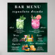 This wedding bar menu poster is designed for couples who appreciate refined style and seamless event coordination. The deep emerald green brings a sense of richness and tranquility, while the opulent gold accents (or gold foil effect, if applicable) provide lavish glamour. This design seamlessly complements modern elegant, minimalist chic, or luxurious wedding themes, ensuring your bar area looks as impressive as your entire celebration. Your guests will love seeing the selections beautifully laid out.
