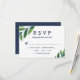 Vår bröllop osa med handdragna grönsakssvängar fyllda med vattenfärg struktur som omger er text mörk blått.
