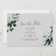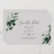 Det här framkallar grönt grått-vågrät, men datumkortet är perfekt för en boho bröllop. Den eleganterna, men ändå strålande utformningen har moody mörk grönt löv för vattenfärg och eukalyptus med en modern bohemisk skogskänsla.