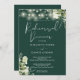 Elegant string ljus, blommigt grey, emerald grönt rehearsal middag inbjudan med namn och repetitionsmiddagsdetaljer som anges i chic och initialer i monogram på motsatt sida. Designad av Thisisnotme©
