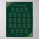 Emerald Grönt 23 Bord Bröllop, sätesdiagram Guld Poster