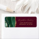 Den lämnat kant i eleganten har en ny adressetikett för bröllopsinbjudans adress och en framväxande grönt vattenfärgsagat gräns som trimmas med faux guld glitter. Anpassadet kombinerar handskriftsskript för guld-färgad och kopparplåt typsnitt på en burgundisk bakgrund.