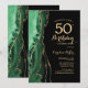 Emerald grönt, svart och guld agate 50 födelsedagsfest inbjudan. Elegantens moderna utformning med grönt vattenfärg gör marmor geodebakgrund, faux glitter guld och typografi till skript. Trendig inbjudan-kortets perfekt för en snyggt kvinnor i firande. Skrivna Zazzle-inbjudningar eller digital utskrivbar mall för omedelbar nedladdning.
