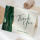 Den här eleganten tack vare det moderna bröllop-kortet har en framväxande grönt vattenfärgsagat gräns som trimmas med faux guld glitter. Anpassadet kombinerar ord "Tack" i handskriftsskript för grönt och namnen för bruden och groomen i kursivt teckensnitt på en elfenbensbakgrund.