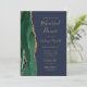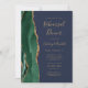 Den lämnat kant i denna elegant, den moderna inbjudan till en förnyad utfrågning i bröllop, innehåller en framväxande grönt vattenfärgsagat gräns som trimmas med faux guld glitter. Anpassadet kombinerar handskrift, rityta och kursivt typsnitt med guld-färgad på en marin blå bakgrund. Den omvända sidan har en matchande framväxande grönt och guld agate-design.