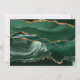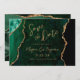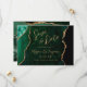 Med det här elegant bröllop kan du spara datumkortet med en bakgrundsbild av en vattenfärgad agate i grönten emerald som trimmas med faux guld glitter. Anpassadet kombinerar modern handskrift, tryckplåt och kursivt typsnitt med guld-färgad. Den omvända sidan har en samordnande grönt och guld agate-design.