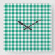 Emerald Grönt and White Checks Gingham Fyrkantig Klocka