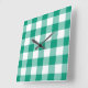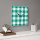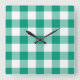 Emerald Grönt and White Checks Gingham Mönster Fyrkantig Klocka