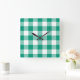 Snyggtens väggklocka med en klassisk grönt för nödanrop och vita checkar med gingham mönster. Finns i kvadratisk och rund form. Matchande hemdekorfärg är tillgänglig.