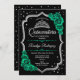 Emerald Grönt Black Silver Elegant Quinceanera Inbjudningar