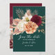 Meddela din speciella dag med denna boho-rustik spara datumkortet med elegant vattenfärgsfärgade blommigtar i burgundi, elfenben och persikor på djup smaragdgrönt. Perfekt för fallbröllop och blommigt. Anpassa med namn och datum. Behöver du hjälp? Kontakta mig: bpkolman@gmail.com
