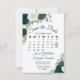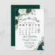 Det här bröllop spara datum-kortet har en rustik utformning av chicens blommigt med skriptbokstäver och handmålad vattenfärg ro i skuggor av emerald and sage grönt. Det finns en anpassade-kalender där du kan placera ett hjärta runt ditt bröllop-datum med plats för parets namn & bröllop. Elegant, snyggt och chic, det här kortet är ett underbart sätt att låta dina vänner och familj veta att spara datumet för din speciella dag.