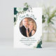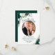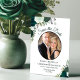 Det här bröllop spara datum-kortet har en rustik utformning av chicens blommigt med skriptbokstäver och handmålad vattenfärg ro i skuggor av grönt och sage från emerald. Det finns en ovalformad ram för ditt foto med utrymme för parets placering i namn & bröllop. Elegant, snyggt och chic, det här kortet är ett underbart sätt att låta dina vänner och familj veta att spara datumet för din speciella dag.