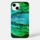 Emerald grönt och blue agate, marble stone skriver ut som bakgrund Anpassa och lägg till ditt namn. Namn är skrivet med ett modernt handskript i stil.