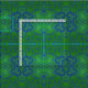 Sömlös dekorativ mönster med blå geometriska former i damm stil på en lysande grönt övertoningsbakgrund.