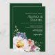 Emerald Grönt Bold Blommigt Watercolor Bröllop Inbjudningar