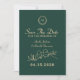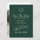 Elegant, modern, minimal och enkel nödanrop till grönt bröllop spara datum med monogram överst, foto längst bak, ett unikt romantiskt par av kärlek-folier med folie av guld teckning och kalligrafi av trendig.