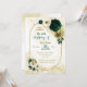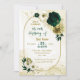 Vackra smaragdblommor i elfenbensvit grönt och blommor i guld med guld löv på en guld-geometrisk födelsedagsfest inbjudan i ram. Uppgifterna om guld glitter simuleras. OM DU VILL HA MER MATCHING PRODUCT klickar du på samlingen ovan eller kontaktar mig.