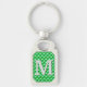Emerald grönt enamel studerade rutnät med monogram rektangulärt silverfärgad nyckelring