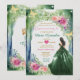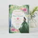 Emerald Grönt Forest Dress Rosa Blommigt Quinceañe Inbjudningar