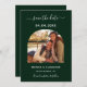 Ett modernt bröllop spara datum-fotokort. En bakgrundsbild för grönten, vit text. Anpassa och lägg till information om foto och bröllop.