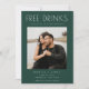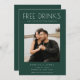 Lustigt bröllop spara datum i en grönt med "Fri dryck (så gifta sig vi oss)". De här moderna spara datumen är perfekt för det roligt paret som inte kan vänta på att fira i bröllop med familj och vänner.