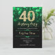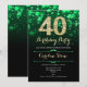 40-årsfestinbjudan. Elegant framträder grönt och svart design med faux glitter guld. Innehåller snyggtens diamanter, bokeh ljus och skriptteckensnitt. Manar eller kvinnor i inbjudan. Perfekt för en födelsedagsfest för vuxen av snyggt. Anpassa med dina egna detaljer. Berätta om du behöver anpassa dig ytterligare. Skrivna Zazzle-inbjudningar eller digital utskrivbar mall för omedelbar nedladdning.