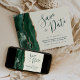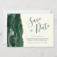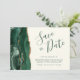 Den här eleganten är modern när du sparar datumkortet och har en vattenfärgsagate i grönt som går ut på att gräns trimmas med faux guld glitter. I anpassadet kombineras handskriftsskript, mönsterplåt och kursivt typsnitt i grönt emerald på en elfenbensbakgrund. Den omvända sidan har en matchande framväxande grönt och guld agate-design.