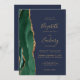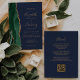 Emerald Grönt Guld Agate Navy Blue QR Code Bröllop Inbjudningar