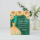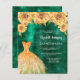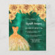 En modern, snyggt och glamorös inbjudan till en Quinceañera, 15:e födelsedagsfesten. En studerad grönt med en faux guld a dress och ro, blommigtar. Namn är skrivet med ett modernt handskript i stil. Anpassa och lägg till information om party. 1 lakan = 1 inbjudan tryckt kant till kant.