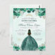 Classic Emerald Grönt Guld Glitter Gnistra Tiara Krona Blommigt Princess Quinceañera-inbjudan