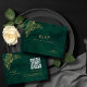 Kortet för QR-Bröllop OSA för Royal Emerald Grönt Blommigt Guld-hölje. Det här kortet för OSA är en aning modernt elegans! På framsidan finns en vacker bakgrund till grönten vid frammarsch med känsliga guld-blommigtar. Det står "OSA" på ett snyggt, följt av parets namn och bröllop. Baksidan är också en framväxande grönt, försedd med samma vackra blommigtar. Det finns en praktisk QR-kod som tar dig till en speciell webbplats med all information om bröllop. Det är ett klassiskt och bekvämt sätt att få gästernas RSVP:er!