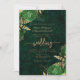 Den här inbjudan i elegant bröllop innehåller grönt-blommigt-buquets som är utgiven med guld faux foil grey i två hörn, på en bakgrundsbild av emerald grönt vattenfärgsagate. Anpassadet kombinerar guld-färgad serif, italic och handskriftsformat typsnitt. På baksidan finns utrymme för information om bröllop, tillsammans med en QR-kodgäst som kan söka på webbplatsen och OSAN, vilket sparar kostnaderna för utskrift och utskick av separat OSA kort.