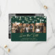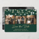 Elegant emerald grönt och guld bröllop-fotot sparar datumkortet. Bröllop spara datum har en fotokollage på 3 bilder mot en bakgrundsbild av en grönt som går att hitta och som läggs till med strängen ljus på framsidan och ett foto på baksidan. Du kan enkelt anpassa den här smaragdgrönten genom att spara datumkortet med dina foton och bröllop-uppgifter.