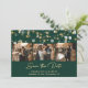 Elegant personlig framträder grönt och guld bröllop-fotot sparar datumkorten med ett modernt skriptteckensnitt. Vårt bröllop spara datum har en fotokollage på 4 bilder mot en grönt som går ut och som läggs till med strängen ljus. Anpassa enkelt den här nödställda grönten och guld spara datumkortet med information om bilder och bröllop, inklusive en webbplats om bröllop, om du vill. Skicka ett meddelande om du vill ha anpassningsbar.