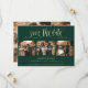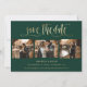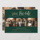 Elegant emerald grönt och guld bröllop 4-foto sparar datumkorten med ett modernt faux guld-skript. Anpassa enkelt detta framväxande grönt bröllop spara datum med information om bilder och bröllop, inklusive en webbplats om bröllop.