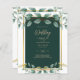Vackra emerald grönt Eucalyptus löv, guld ram och guld under punkten bröllop. Den här posten ingår i en större samling som omfattar bröllopsinbjudningar (budget och traditionell) OSA kort, Spara datumen, välkomstskylt från Bröllop och mycket annat. Visa den bifogade samlingen om du vill se alla. Den här roliga utformningen är perfekten för ditt moderna bröllop, vare sig det är vår, sommar, fall eller vinter. 🎨 Design av LeahG® weddingdesignchic.com och 100xgifts.com. 📌 PIN det här till din Pinterest bröllop-modell. ⬇️ VISA ALLA PRODUKTER SOM HAR DEN HÄR KONSTRUKTIONEN VIA FLIKEN NEDAN ⬇️