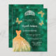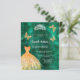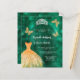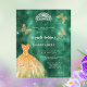 En modern, snyggt och glamorös inbjudan till en Quinceañera, 15:e födelsedagsfesten. En studerad bakgrund från grönten med faux guld a dress, faux silver tiara och guldfjärilar. Namn är skrivet med ett modernt handskript i stil. Anpassa och lägg till information om party. 1 lakan = 1 inbjudan tryckt kant till kant.