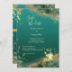 Emerald grönt guld jewel bröllop säkra datumet inbjudningar