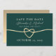 Lägg märke till din stora dag med den här eleganten som gör att grönt och guld-rep sparar datumkortet. Med en minimalistisk layout, ett romantiskt intertwinent hjärtmotiv och ett förfinat serif och script typsnitt är det perfekt för par att söka ett tidlöst, sofistikerat utseende. En fet juvelfärgad bakgrund anger tonen för ett modernt men klassiskt firande. Matcha det här kortet med fullt Emerald Grönt Bröllop Suite för ett sammanhängande kontorsutseende. Behöver du hjälp med att anpassa? E-posta mig på bpkolman@gmail.com - jag är lycklig för att hjälpa till!