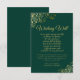 Detta vackra bröllop-kort är ett smakfullt sätt att be era gäster om pengar eller pengarar i stället för presenter. Eleganten framträder i grönt och guld färgad och har dekorativ dekorativ faux foil snöre i hörnen och finare-skriptbokstäver. Titeln lyder "Wishing well" med en söt dikt: När vi börjar med vårt nya liv som Mr. Och fru, vi har redan ett hus med fullt, men om ni vill ge oss ge en present skulle en gåva från några pengarar vara så trevlig! Det finns plats i grund för en kort-not och namnteckning.