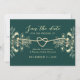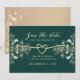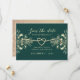 Chic emerald grönt och guld sparar datumkortet med elegantens blommigt accents och en romantisk hjärtrytm. Denna moderna utformning är helt i anpassade med namn, bröllop-datum och detaljinformation, skapar den perfekten för att meddela firande. Det här tidslösa kortet är utskrivet på premiumkartongen och anger tonen för bröllop och lämnar ett bestående intryck på dina gäster.