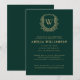 Emerald Grönt Guld Vapensköld Monogram Studentfest Inbjudningar