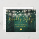 En emerald grönt av ljus rustic wood lador boho OSA kort med chic guld typografi. Den omvända informationen innehåller din information och en förfrågan från roligt gäst sång. Designad av Thisisnotme©
