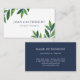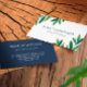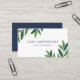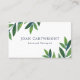 Modern och skarp affärskort i vitt med löv i olika gröntar och blått för en terapeut, psykolog eller liknande.