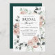 Emerald Grönt, Sage Grönt, Dusty Ro, Dusty Rosa Blommigt Rosor och Eucalyptus Botanical Grey Watercolor Vår eller Summer Bröllop Inbjudningskort för möhippa - innehåller vacker och elegant manustypografi med moderna tropiska botaniska blommor och grönenergi för den speciella Bröllopsdagen firande.