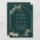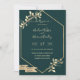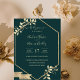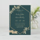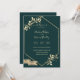 Deep Emerald Grönt och mousserande champagnebeige i kombination med geometriskt ram och bladverk skapar en modern och unik, men romantisk inbjudan till dina ungdom. Heldragen bakåt.